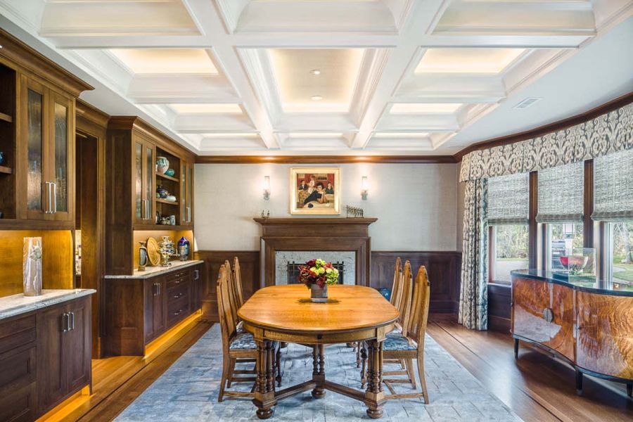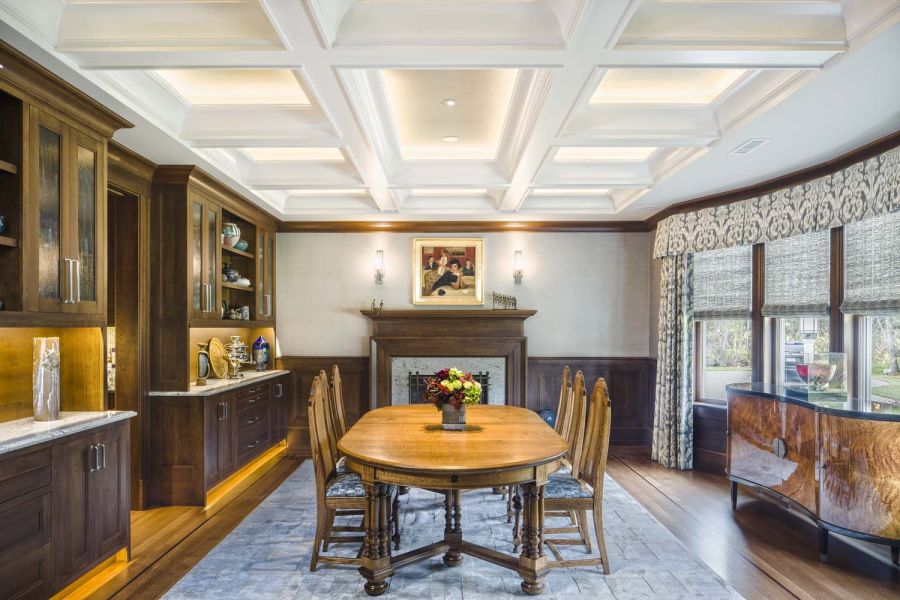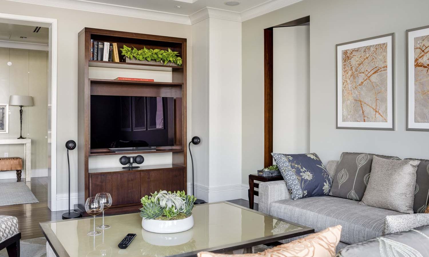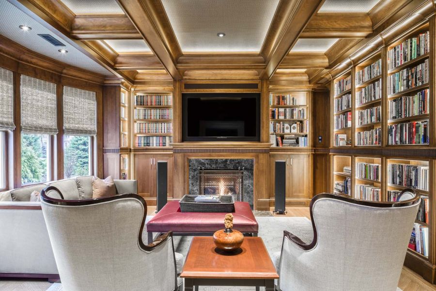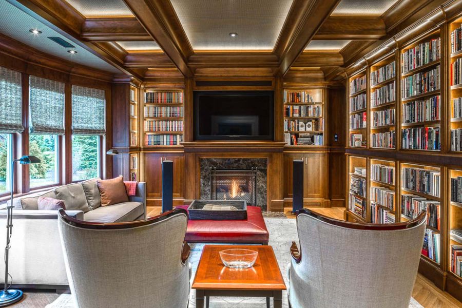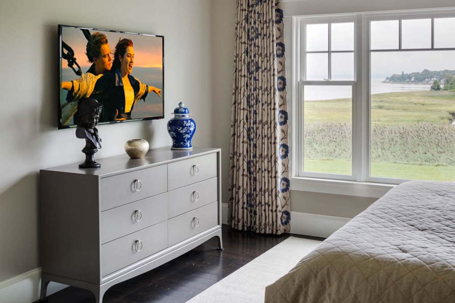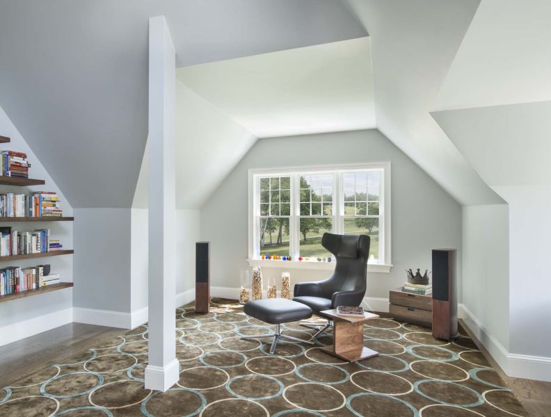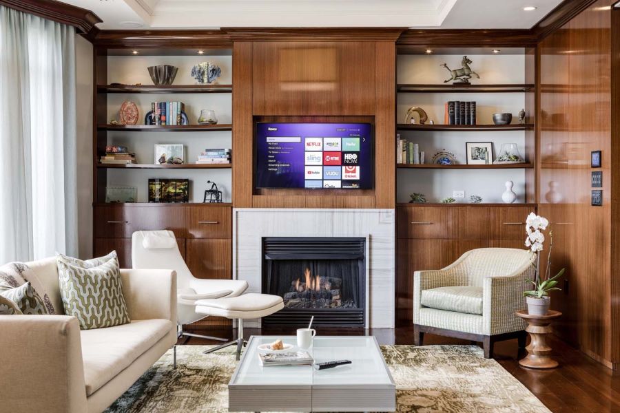 A pretty setup is made astonishing thanks to convenient smart controls with Control4 whole-house A/V integration. One-touch settings offer five “media scenes” based on source selection. Family members need only select “DVD” to trigger a series of automated adjustments that include activating the A/V system and dimming the lights. Mood settings are also available.