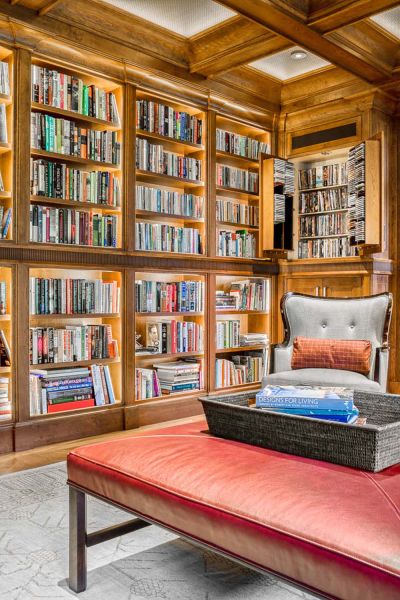 Natural lighting and city views are controlled with a Lutron system, which is programmed to open and close shades in the living room, library, and primary bedroom, based on time of day, season, and occupancy. This functionality not only adds convenience but also protects interior surfaces from fading from UV exposure.