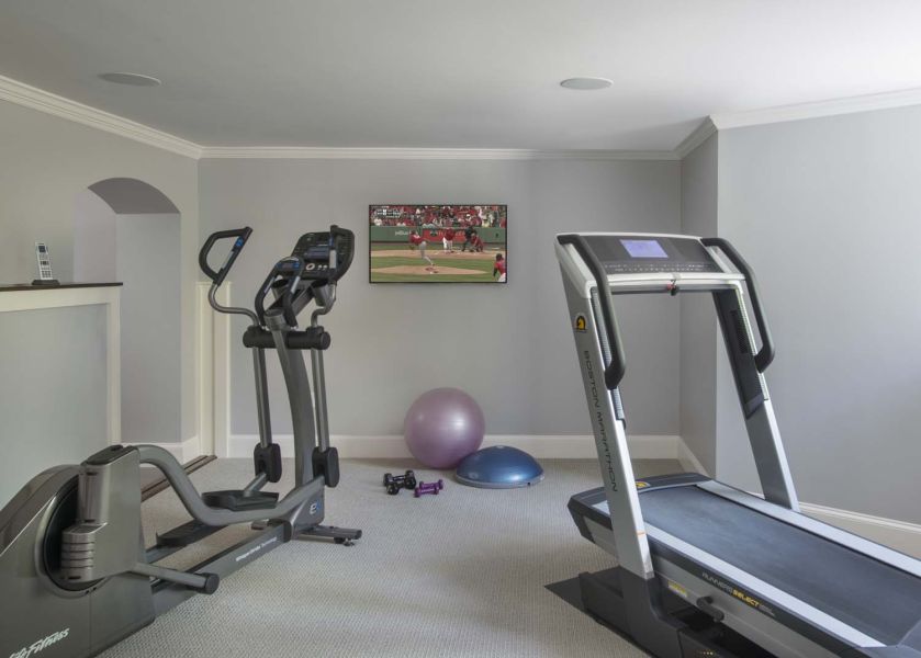 Audio and video are on tap in this upscale home, with options for entertainment in every room. Streaming music is available throughout, thanks to Sonance Architectural in-ceiling speakers and other audio equipment.