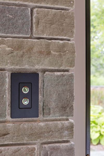 With so many oversized windows, shading is a must at Salt Marsh Way. Electronic shading is provided in many areas of the house, integrated with the lighting system keypads for ease of use. The homeowners can also use any Crestron touch panel or the Crestron app on their smart phones or tablets to open or close the shades. The shades are programmed to open and close based on the time of day and occupancy. Since the homeowners liked the chic industrial look, all of the exposed rollers had to be powder-coated black to match the aesthetics of the shades.