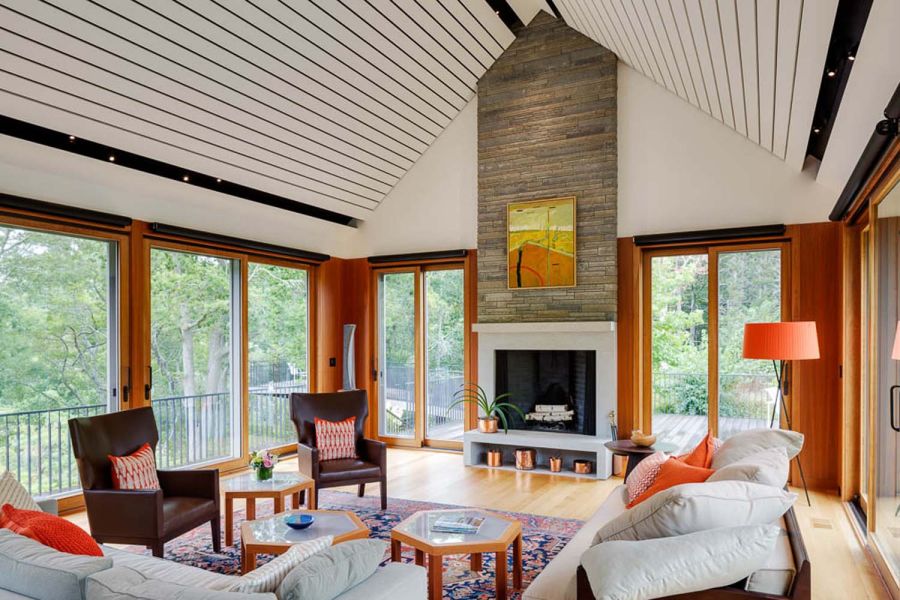 An extraordinary home architecturally and technologically, Salt Marsh Way is designer for today and tomorrow. Designed by Seattle architect Kenney Nickerson for a retired couple moving from Houston to Cape Cod, three levels of living space are exquisitely executed with cherry woodworking throughout, floor to ceiling glass windows and custom doors. The seamlessly integrated technology controls lighting, HVAC, shading, security, music, video and enterprise level computer networking.